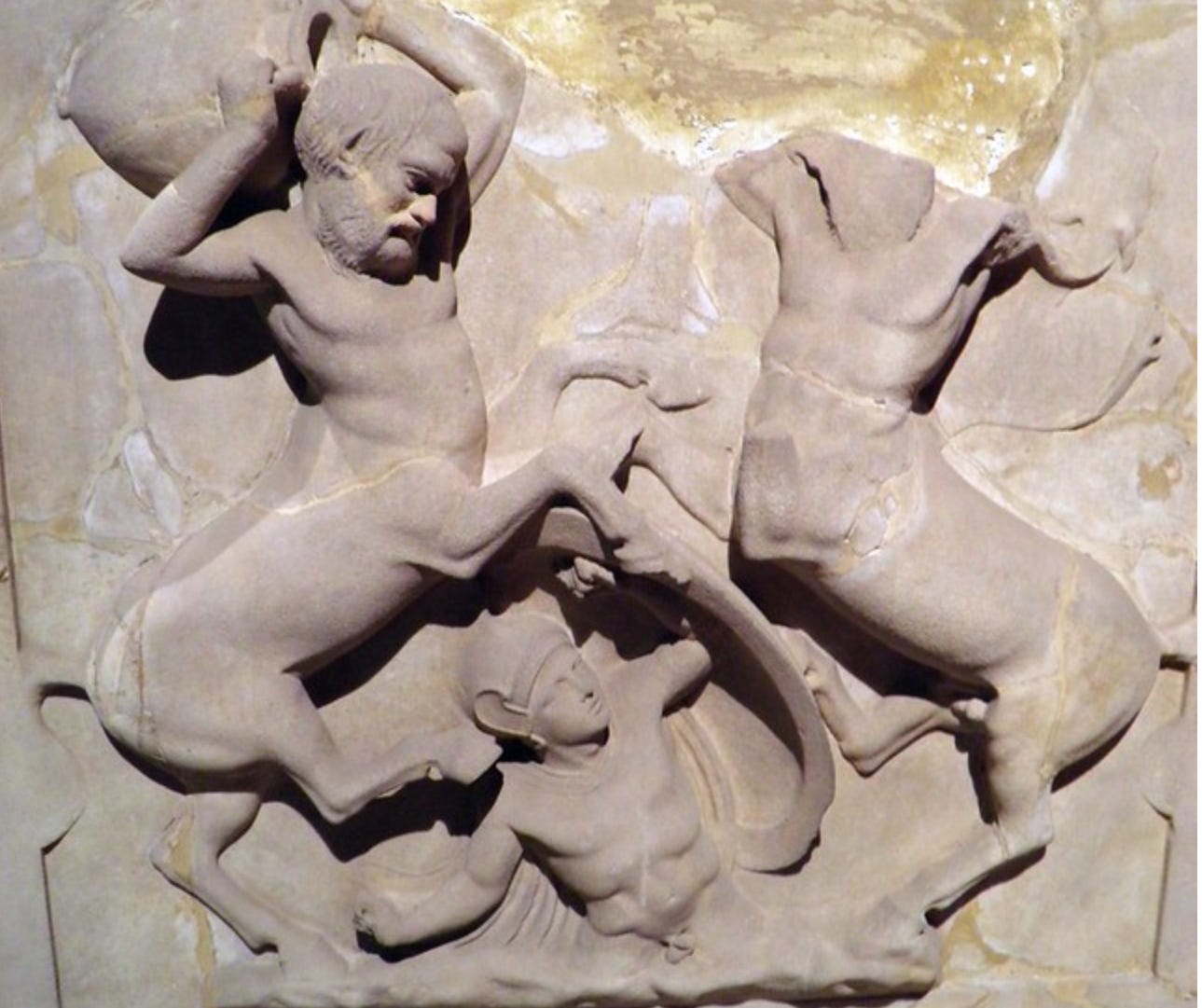 So up stands Nestor of Pylos, the wise and eloquent elder of the Achaeans (i.e. Greeks), with an attempt at mediation that will eventually prove unsuccessful. In the course of his speech, he harks back to another famous war in which he participated during the course of his long life, and that stands much closer to myth than does the history of the Trojan War. This is the Centauromachy, or ‘Centaur fight’.