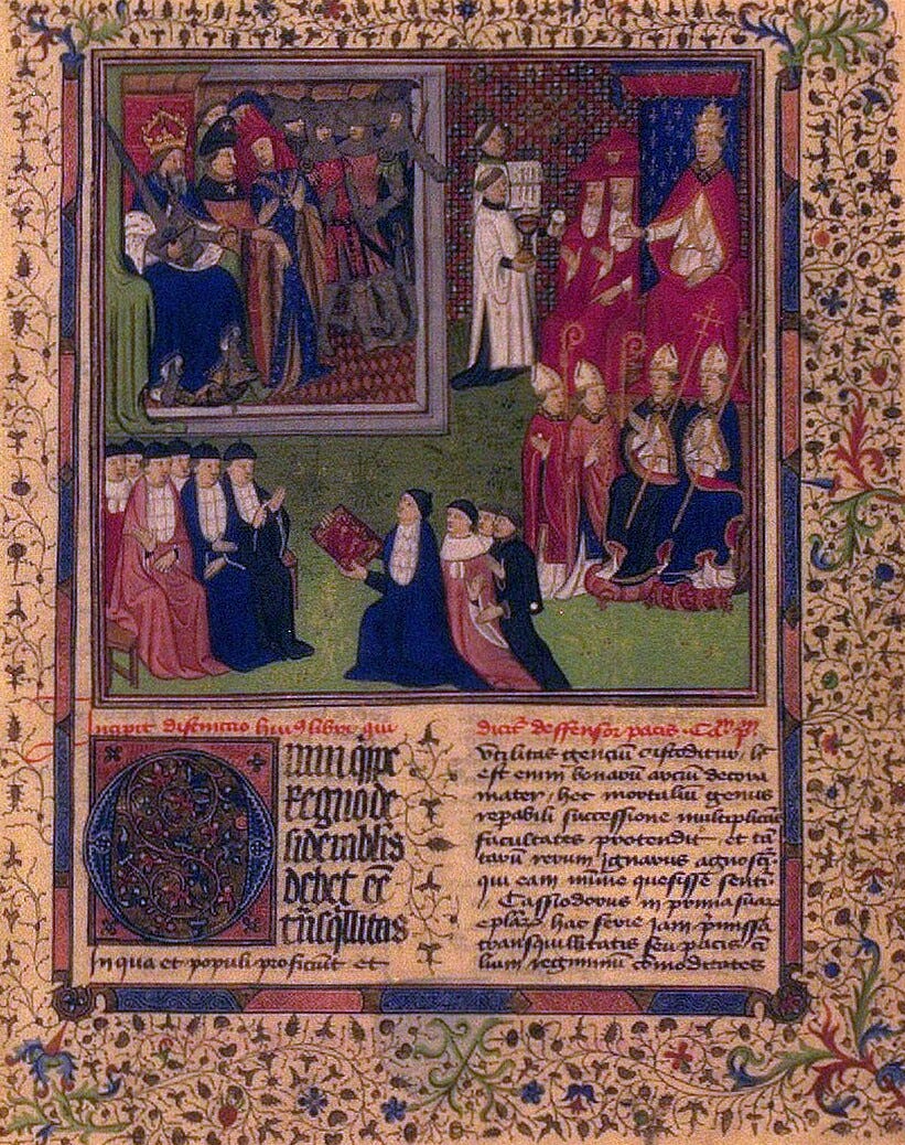 Here we see a conception of monarchical power that is at once maximally absolutist, to the point of granting the decrees of the emperor the force of laws, yet also ultimately dependent on an act of the people (albeit one that was by this point considered irrevocable). As we shall shortly see, this went on to exert great influence on later constitutional thought – notably in establishing the pre-liberal absolutism that Yarvin believed to be pristinely distinct from popular sovereignty. In truth, demotism and despotism in Western tradition are two boles of one tree – the roots of which we have presently exposed to light.
